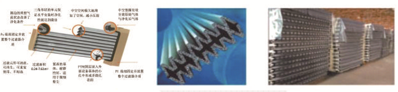 過濾精度高、過濾面積大、耐酸、堿能力強、機械性能優(yōu)異、初裝結(jié)構(gòu)緊湊、自清理能力強、壓力損失待定、粉塵捕捉效率高、優(yōu)異的耐濕性、超長的使用壽命等諸多優(yōu)點。